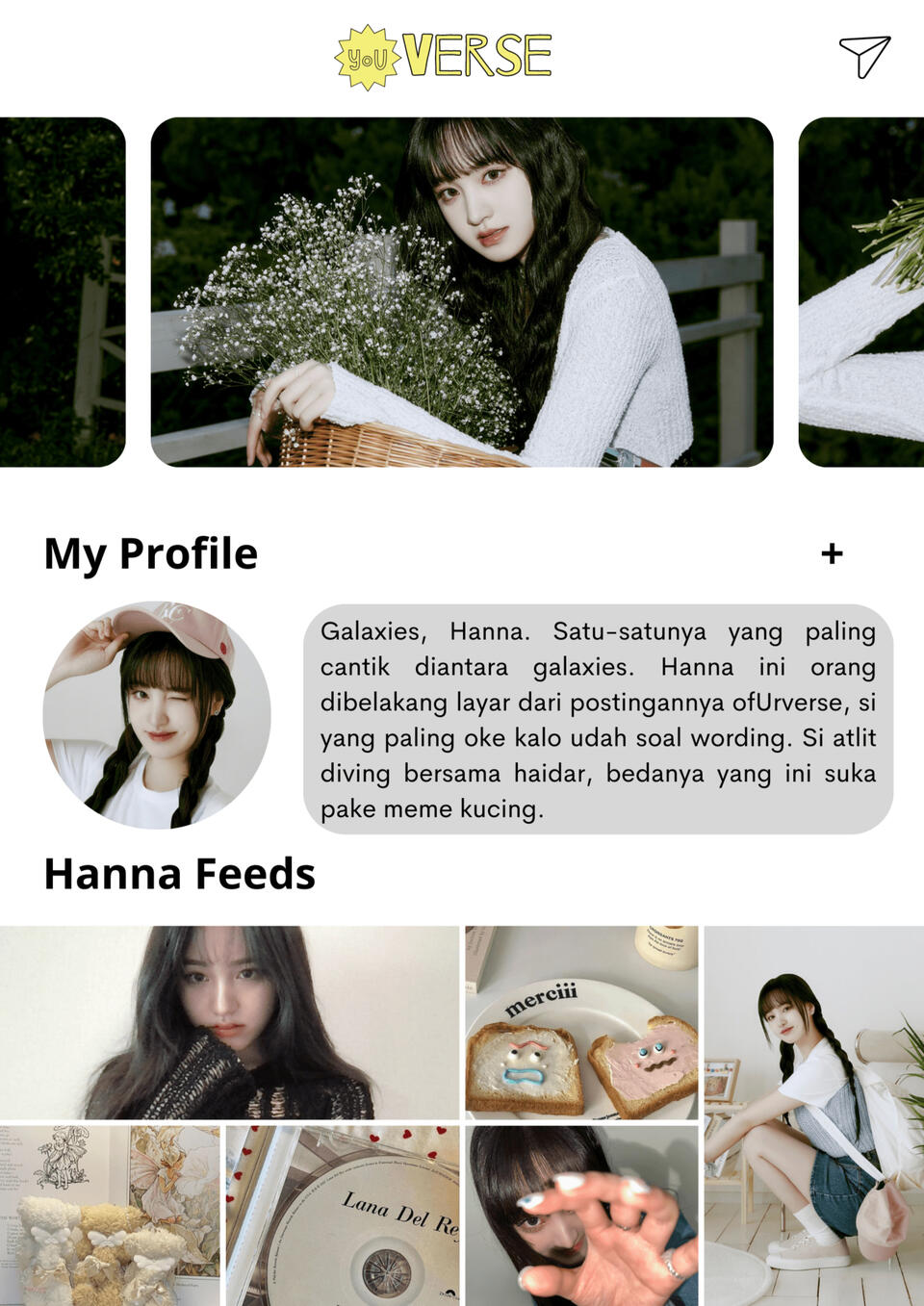 ofUrverse, Open Agency berbasis Bahasa Indonesia yang terinspirasi dari Weverse, sebuah platform yang memfasilitasi interaksi antara idol dan para penggemar. Selain itu, ofUrverse mengacu pada sebuah konsep yang dikenal sebagai "universe", di mana berbagai jenis benda alam semesta dengan karakteristik yang berbeda-beda saling berinteraksi dan membaur demi menciptakan keharmonisan.Dalam mencapai tujuan utamanya, yaitu sebagai tempat interaksi yang nyaman bagi the little star, ofUrverse hadir dengan segala kelebihannya. Dalam rangka menjaga keamanan dan kenyamanan pengguna, ofUrverse menugaskan sosok Galaxies yang selalu siap membantu dan melindungi the little star. Sebagai penjaga setia, Galaxies bertanggung jawab memastikan keberadaan dan pengalaman positif bagi para the little star dalam ofUrverse.