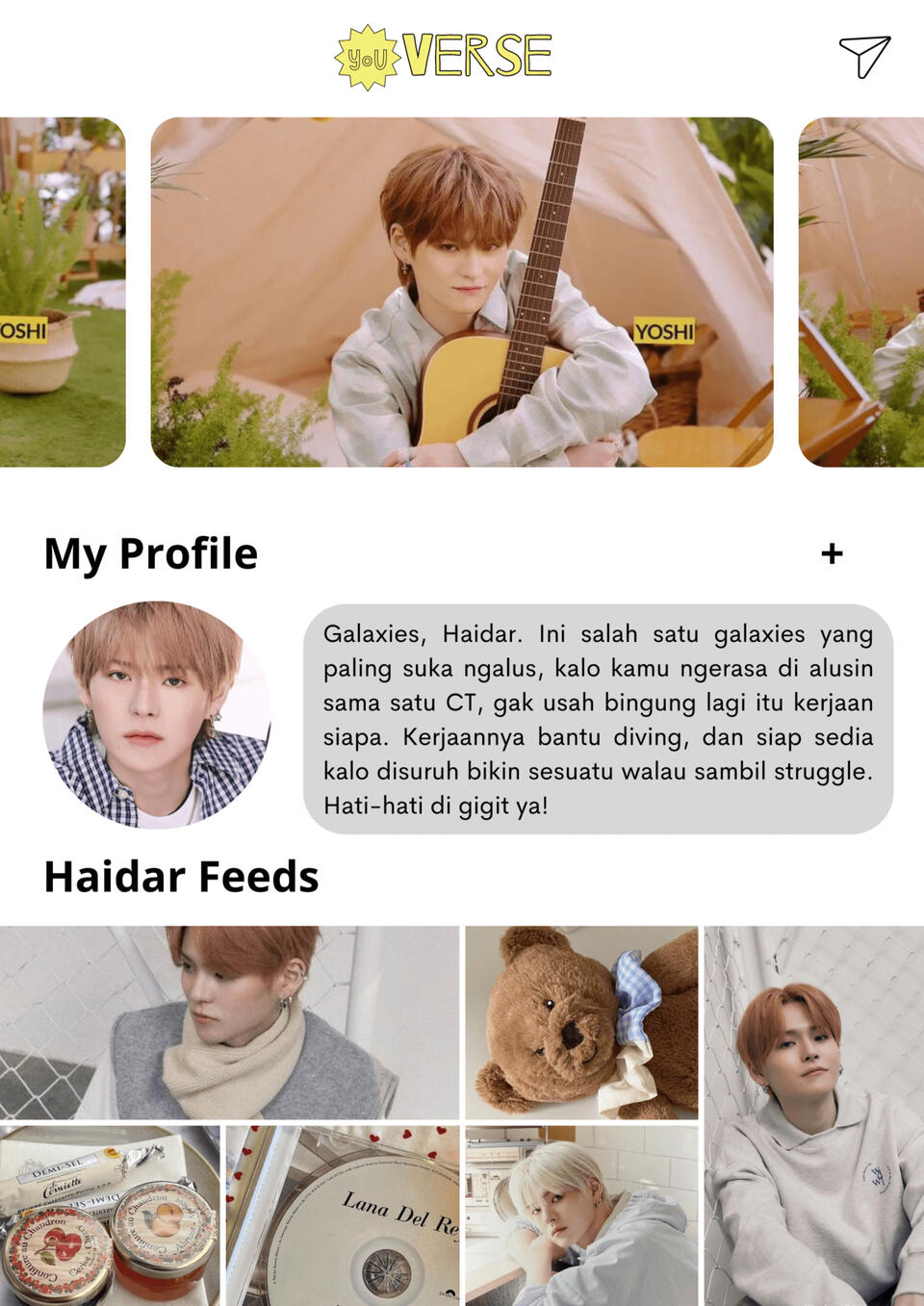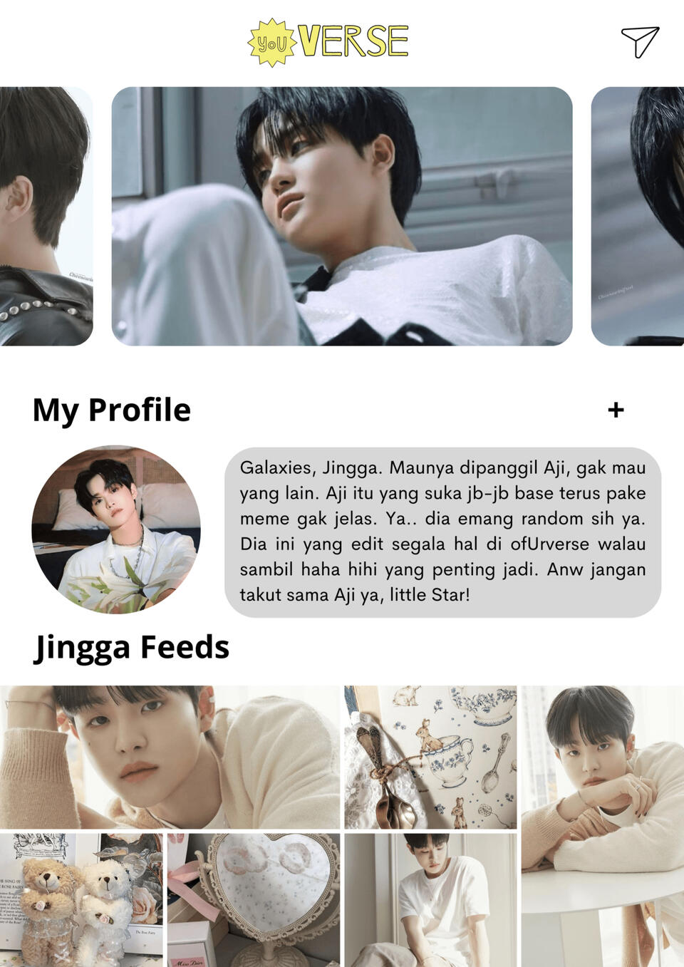 ofUrverse, Open Agency berbasis Bahasa Indonesia yang terinspirasi dari Weverse, sebuah platform yang memfasilitasi interaksi antara idol dan para penggemar. Selain itu, ofUrverse mengacu pada sebuah konsep yang dikenal sebagai "universe", di mana berbagai jenis benda alam semesta dengan karakteristik yang berbeda-beda saling berinteraksi dan membaur demi menciptakan keharmonisan.Dalam mencapai tujuan utamanya, yaitu sebagai tempat interaksi yang nyaman bagi the little star, ofUrverse hadir dengan segala kelebihannya. Dalam rangka menjaga keamanan dan kenyamanan pengguna, ofUrverse menugaskan sosok Galaxies yang selalu siap membantu dan melindungi the little star. Sebagai penjaga setia, Galaxies bertanggung jawab memastikan keberadaan dan pengalaman positif bagi para the little star dalam ofUrverse.